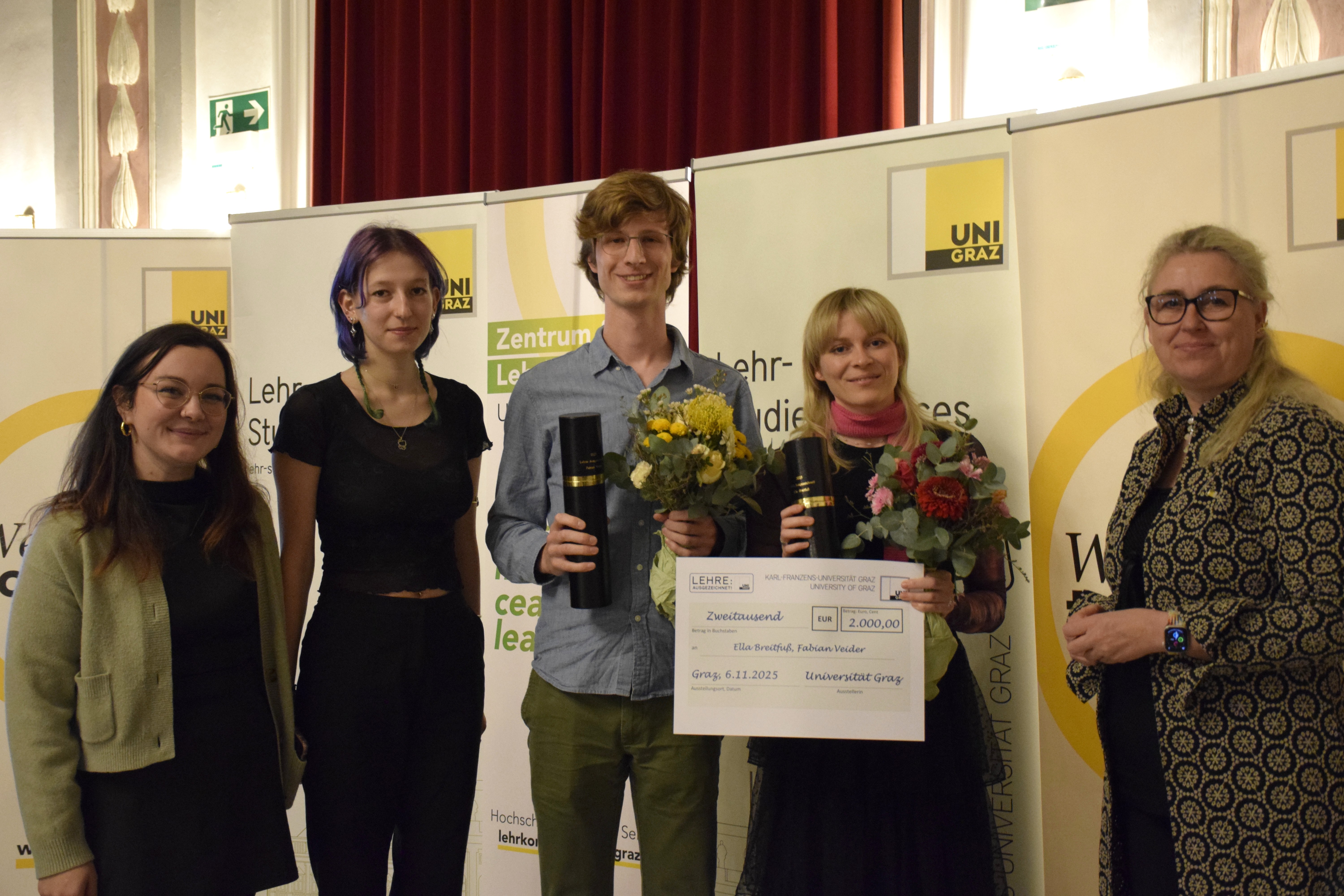 Alljährlich wird an der Universität Graz der Lehrpreis „Lehre: Ausgezeichnet!“ vergeben. Als krönender Abschluss des Nominierungs-, Bewerbungs- und Auswahlprozesses gilt wohl die Verleihung selbst: Am 6. November 2025 wurden die Lehrpreisträger:innen in feierlichem Rahmen für ihre engagierte, hochschuldidaktisch versierte Arbeit in der Lehre geehrt.